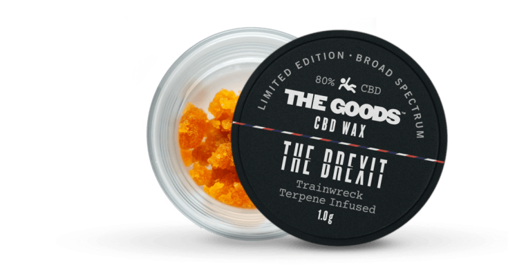 “The Brexit” 80% CBD wax and 99% CBD shatter are the latest edition to recreational CBD brand ‘The Goods’ lineup of CBD extracts, which is on sale at HempElf and a number of head shops around the country.